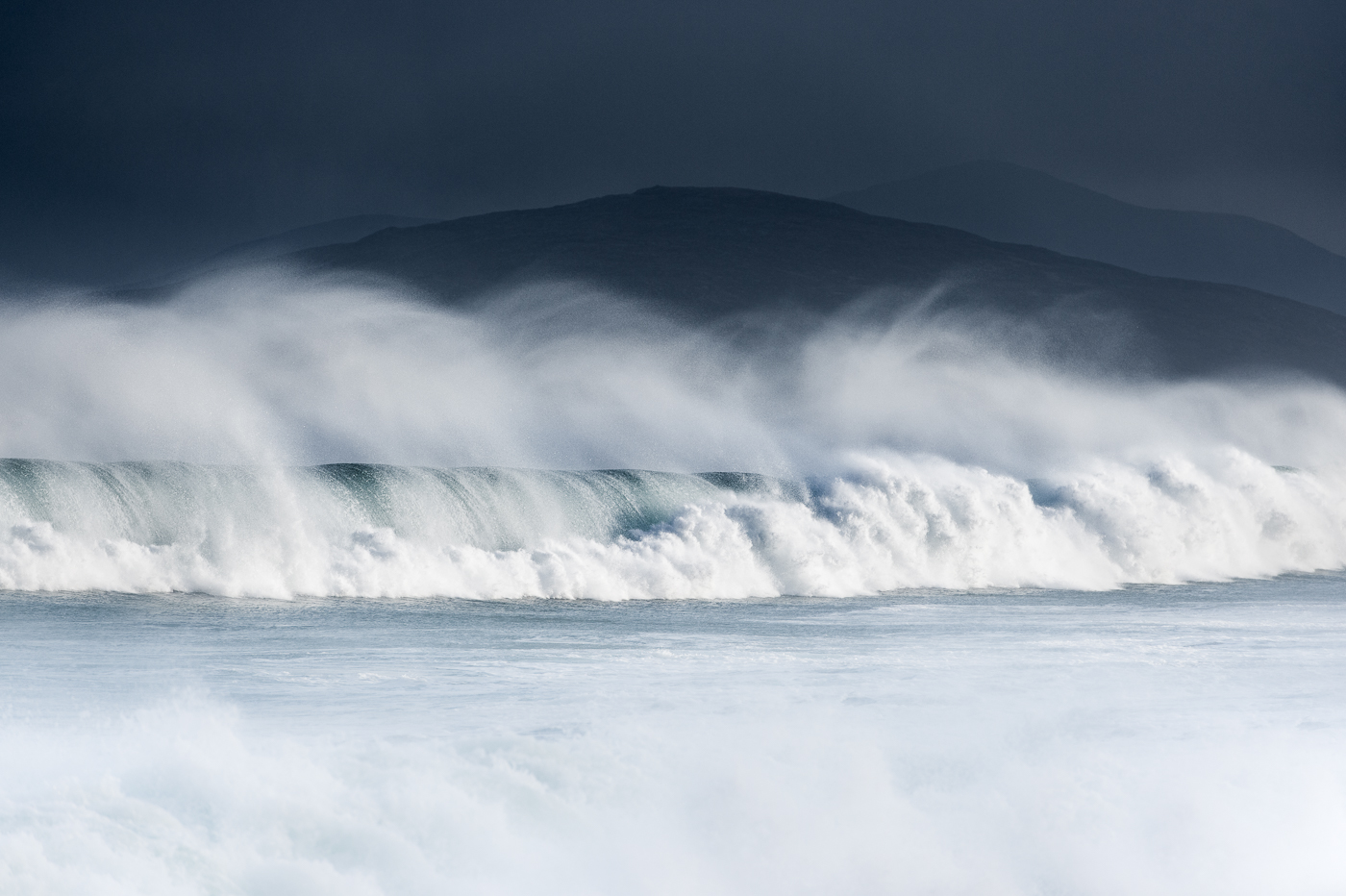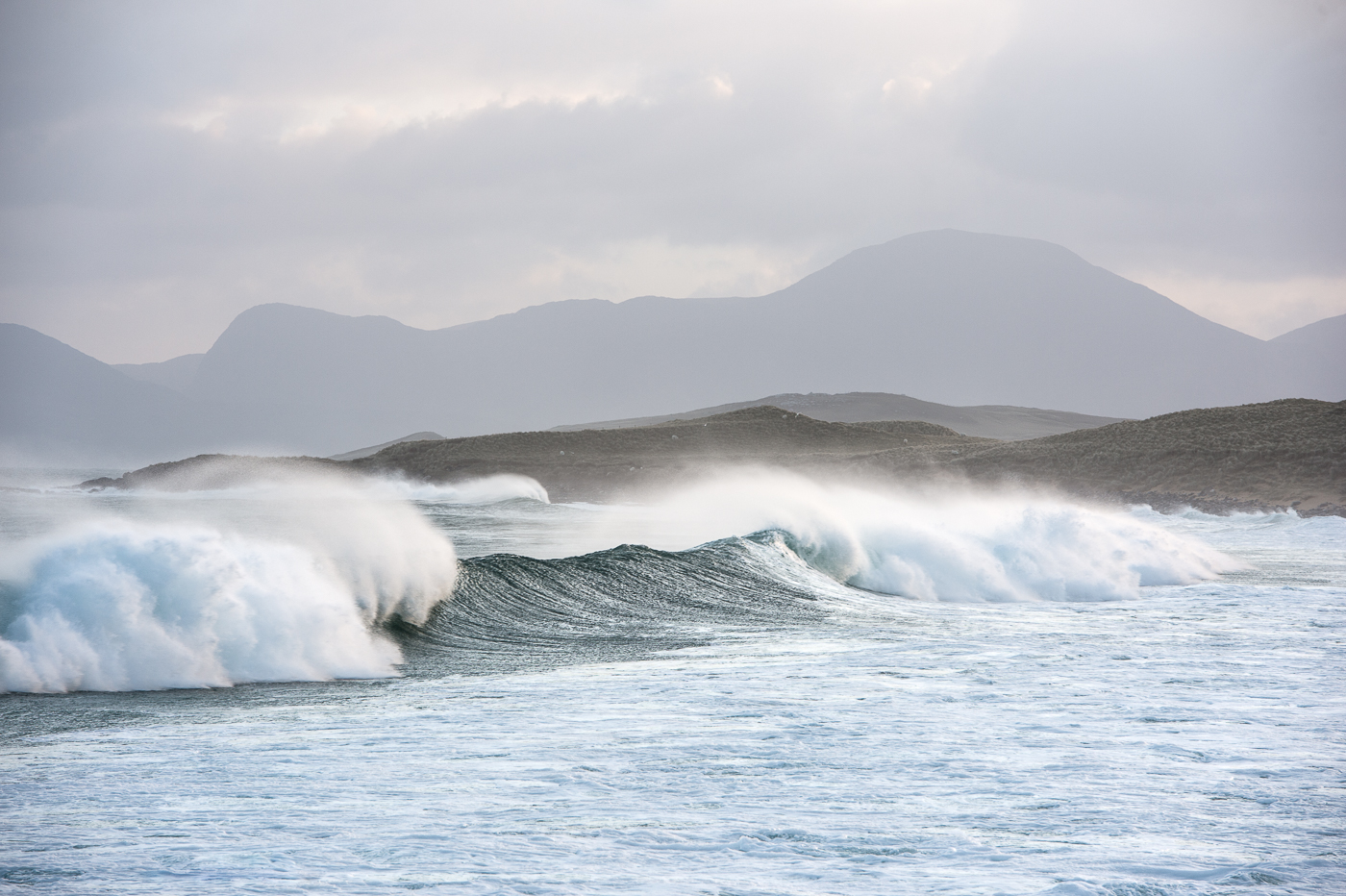 Depuis le haut de la dune j’observe les oyats qui ondulent au rythme des rafales incessantes, l’air est saturé de sel et l’odeur de l’iode règne dans ce paysage tourmenté. Dans un bouillonnement d’écume, les vagues déferlent depuis le large, à peine ralenties par le vent qui semble vouloir les repousser. La mer moutonne et l’horizon se voile d’une écharpe de bruine pour parfaire ce vibrant tableau. Dans cet univers tantôt pastel, tantôt monochrome, le fracas environnant s’oppose au le silence. Le tumulte de l’eau estompe les formes aux motifs abstraits. Le réel et l’imaginaire se mêlent dans une immense effervescence. Dans un jeu d’oppositions, la fureur lutte avec la douceur, l’absence de lumière atténue les contrastes et révèle les couleurs, la rudesse des éléments exacerbe la poésie du moment.