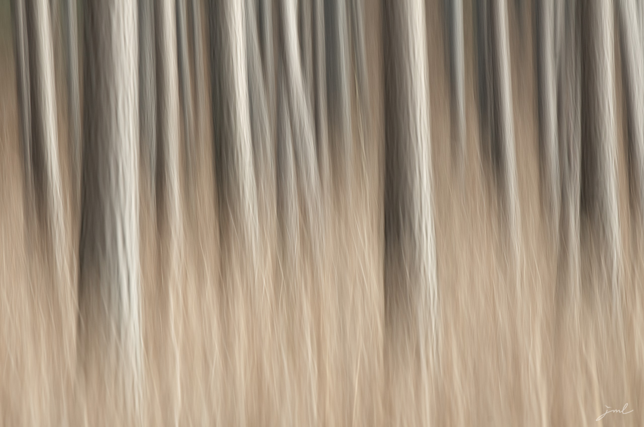 A la fois végétal, monument et symbole universel de la vie, l’arbre est depuis toujours source de représentations oniriques et de légendes. C’est en m’immergeant au cœur de la forêt, que l’idée de dépasser cette vision descriptive pour entrer dans l’univers du rêve m’est venue. Par un soir d’automne, sous les pins sylvestres, au milieu des bouleaux dorés et des bruyères enflammées par les derniers rayons du couchant, les fûts orangés des arbres s’élevaient dans une douce palette de couleurs. La magie de l’ambiance ne pouvait se limiter à une simple vision figurative, insuffisante pour restituer l’intensité du moment. Il fallait alors puiser dans sa vision créative et exprimer ce que nous offre l’univers de la forêt pour basculer dans le royaume de l’imaginaire. Dépasser sa propre perception des choses et ne retenir que l’essentiel, quelques lignes, une harmonie de couleurs pour donner vie à ces âmes sylvestres.